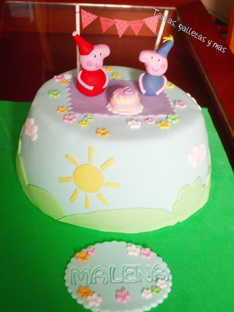 Esta tarta es para la hija de una amiga a la que quiero un montón, Malena cumplió el día 15 dos añitos y quiso una tarta de Peppa Pig para su fiesta de cumpleaños.