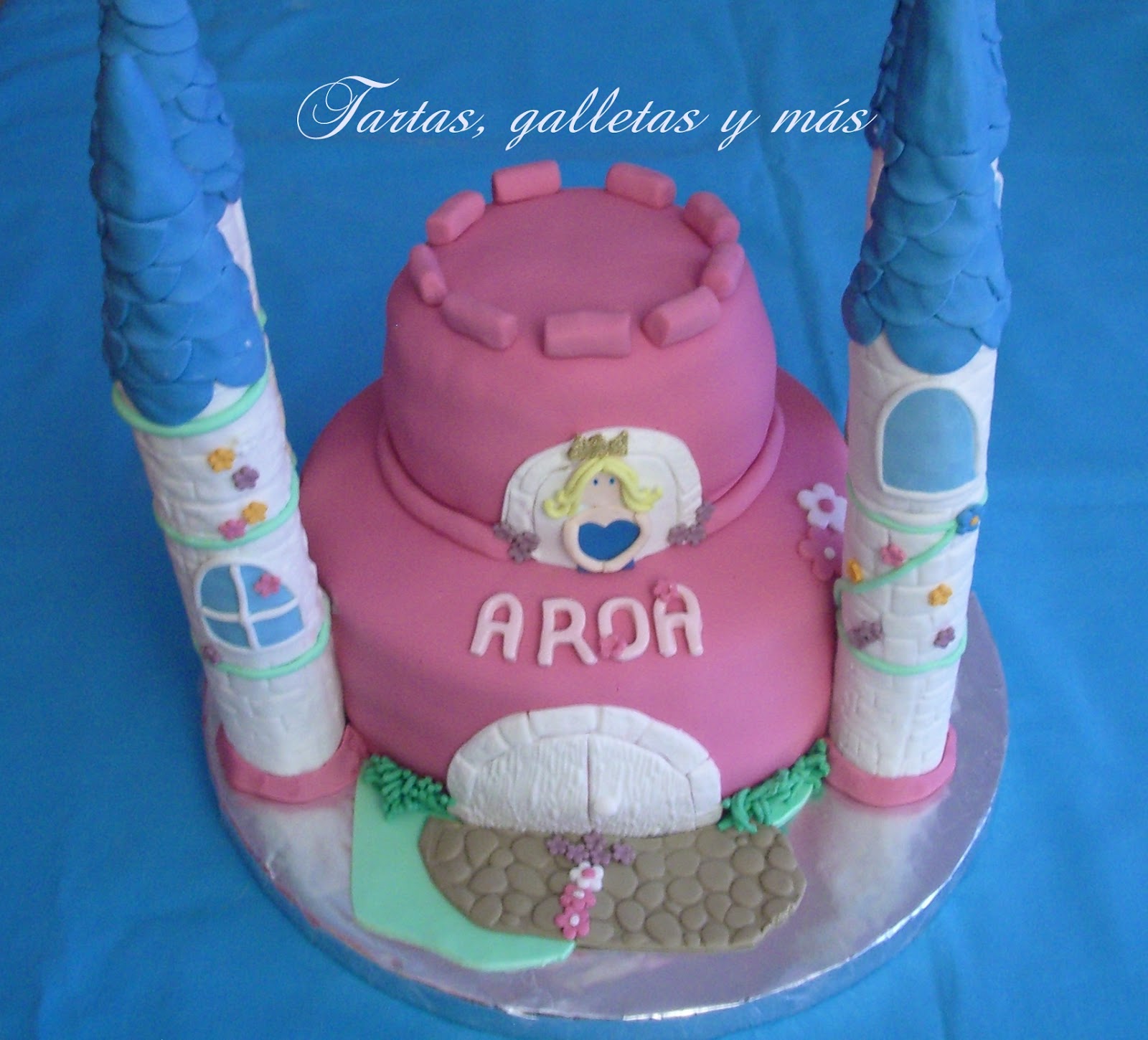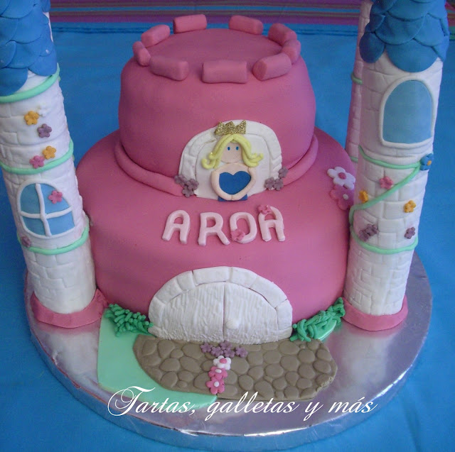Aroa fue compañera de mi hijo en la guardería el año pasado. Su madre me pidió hace más de un mes la tarta para su cumpleaños y cuando me dijo que le encantaba el rosa y las princesas, no tuve duda en sugerirle la tarta en forma de castillo de princesas.