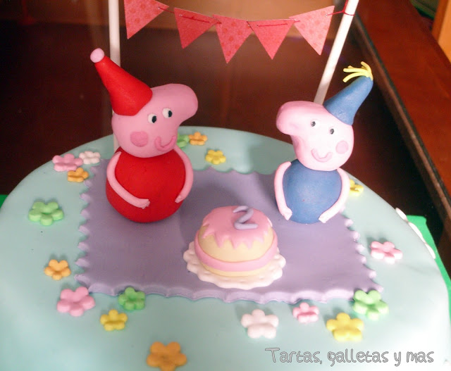Esta tarta es para la hija de una amiga a la que quiero un montón, Malena cumplió el día 15 dos añitos y quiso una tarta de Peppa Pig para su fiesta de cumpleaños.